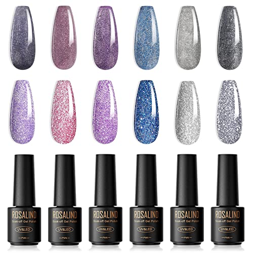 ROSALIND UV Nagellack Glitter Färg 6 Färger Glitter Rosa Röd Grå Brun Svart Gel Nagellack Set Färg Naglar UV Nagel Gel Polish För Lampa Nagel Salong Design Kit