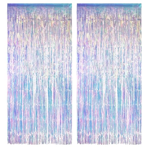AILEXI 2-pack metall glitter gardiner folie fransar skimmer gardin dörr fönster dekoration för födelsedag bröllop fest levererar serpentiner 100 x 200 cm – transparent flerfärgad