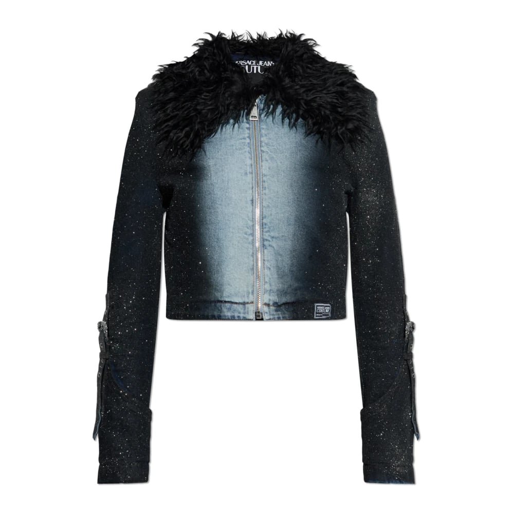 Versace Jeans Couture, Jackor , Dam, S, Denim, Denimjacka med skimrande glitter