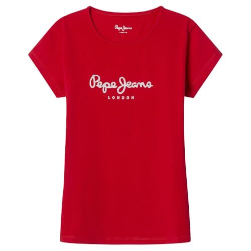 Pepe Jeans Hana Glitter N T-shirt för flickor, Röd (kungsröd), 14 år