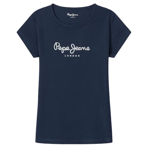 Pepe Jeans Hana Glitter N T-shirt för flickor, Blå (marinblå), 14 år