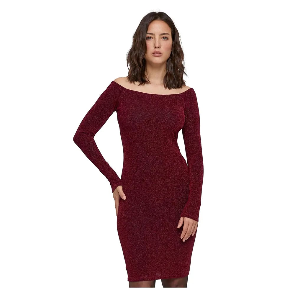 Urban Classics Off Shoulder Glitter Klänning Med Långa ärmar