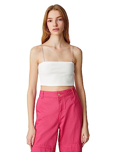 Koton dam glitter sten strappy ribbad crop linne, Ecru (010), XS