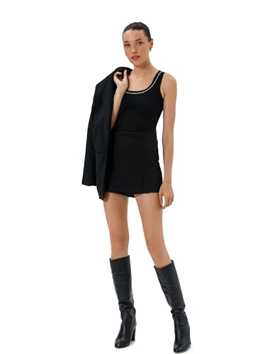 Koton kvinnor U-hals glitter detalj ribbad strappy linne, Svart (999), XL