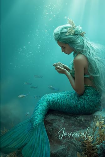 Emerald Tides Journal: A Magical Journey Beneath the Sea: A Magical Notebook Featuring a Realistic Green-Haired Mermaid Sitting on a Rock Beneath the ... and Silver Glitter — Perfect for Dreaming,