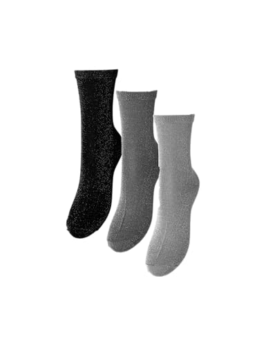 PCSHIRLEY GLITTER SOCKS 3-pack, Mörkgrå melange/förpackning: Lunar rock/Lurex-Black/Lurex, One Size