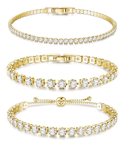Dochais 3 stycken tennisarmband damer silver guld zirkonia armband diamant armband damer armband glitter tennisarmband strass kristaller set för kvinnor flickor fru mamma smycken gåva, 25 centimeters