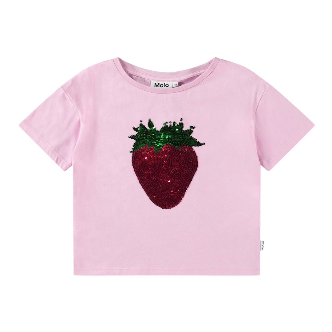 Molo Roseanna T-shirt Glitter Strawberry 110 cm Rosa 110 cm kvinna