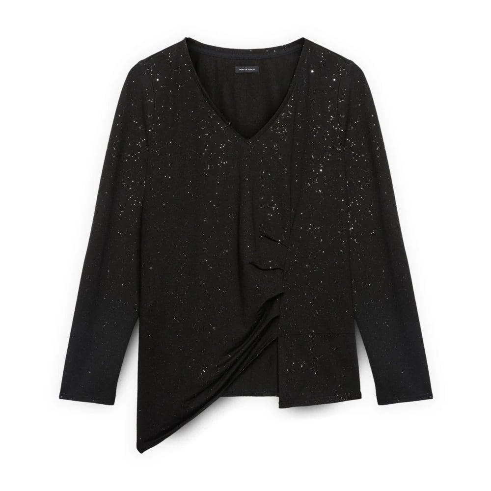 Fiorella Rubino, Blusar & Skjortor , Dam, L, Polyester, Glitter T-shirt med sidodrapering