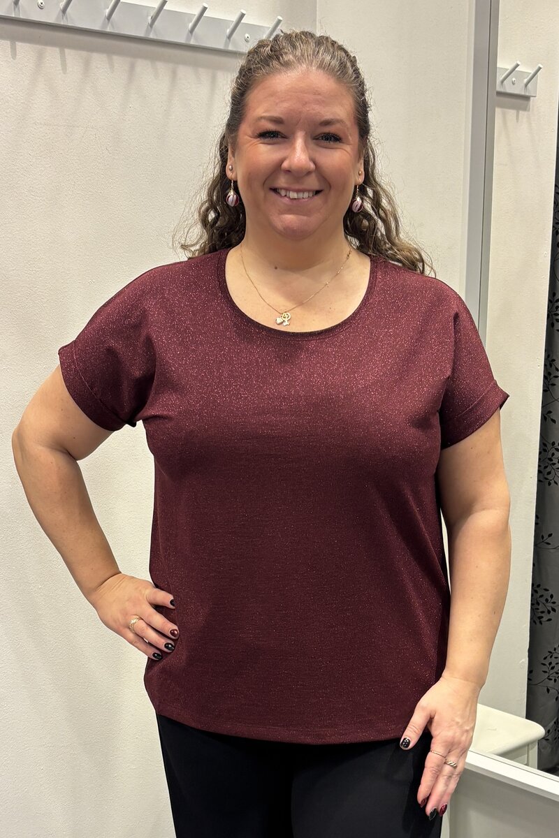 Fiorella Rubino, Blusar & Skjortor , Dam, M, Polyester, Glitter T-shirt med sidodrapering