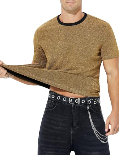 Mauro Kane Herr paljetter och glitter kortärmad glitter t-shirt för dans nattklubb och fest, A3-guld, S