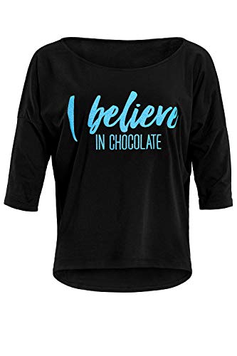 WINSHAPE Damer Winshape dam ultra lätt modal-3/4-ärm skjorta Mcs001 med neon blå "i Believe in Chocolate" glitter tryck yoga tröja Svart-neonblå-glitter XL