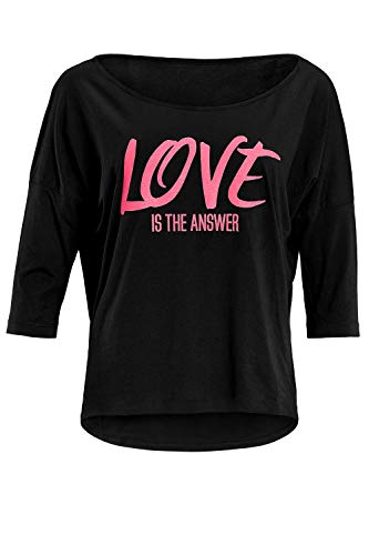 WINSHAPE Damer Winshape dam ultra lätt modal-3/4-ärm skjorta Mcs001 med Neon Pink "Love Is The Answer" glitter tryck yoga tröja Svart-neonrosa glitter M