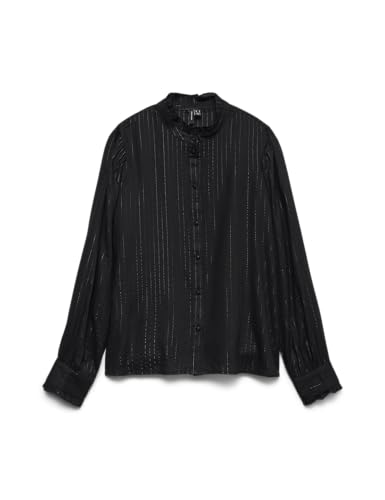 VERO MODA Vmbumpy Ls Glitter Frill skjorta WVN Noos, svart, L, Svart, L