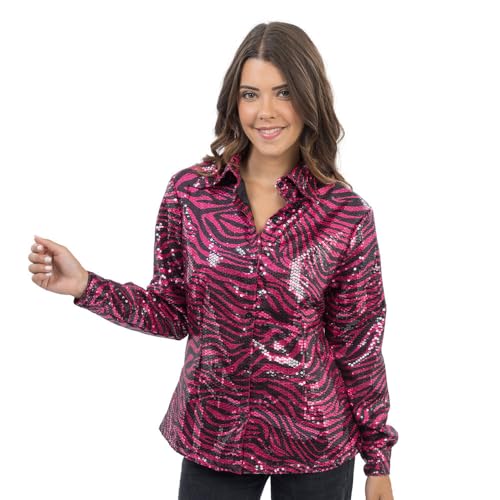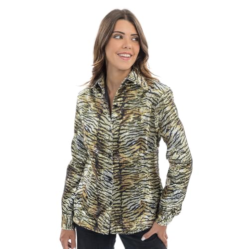 Chaks - Tiger damskjorta, paljetter, glitter, djurtryck, skjorta, tillbehör, karneval, festtillbehör