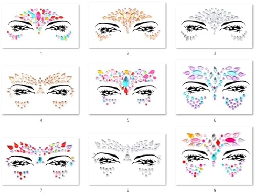 9 st ansikte ädelstenar självhäftande glitter juvel tatuering klistermärke festival ädelstenar rave fest kropp smink Z9ZAKMIXA flerfärgad