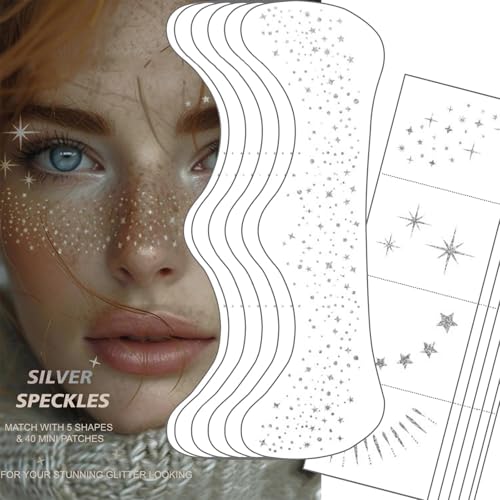 Sularpek 25 stycken glitter fräknar tatuering silver, glitter fräknar, festival fräknar, vattentäta ansiktsservetter för musikfestivaler och strandfester