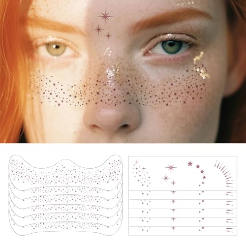 LOPHE Glitter Ansiktsfräknar Tatuering, 6 Delar Glitter Fräknar Ansiktstatuering Festivalfräknar, Glitter Fräknar för Fest, Festival, Framträdanden (K9022)