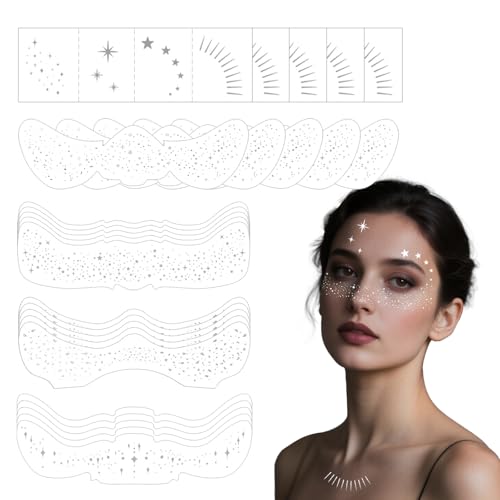 Ansikte ädelstenar 6 set, glitter ansikte festival smycken, självhäftande ansikte strass tillfällig tatuering, ansikte klistermärken ögonbryn ansikte kroppssmycken, för glitter effekt fester shower