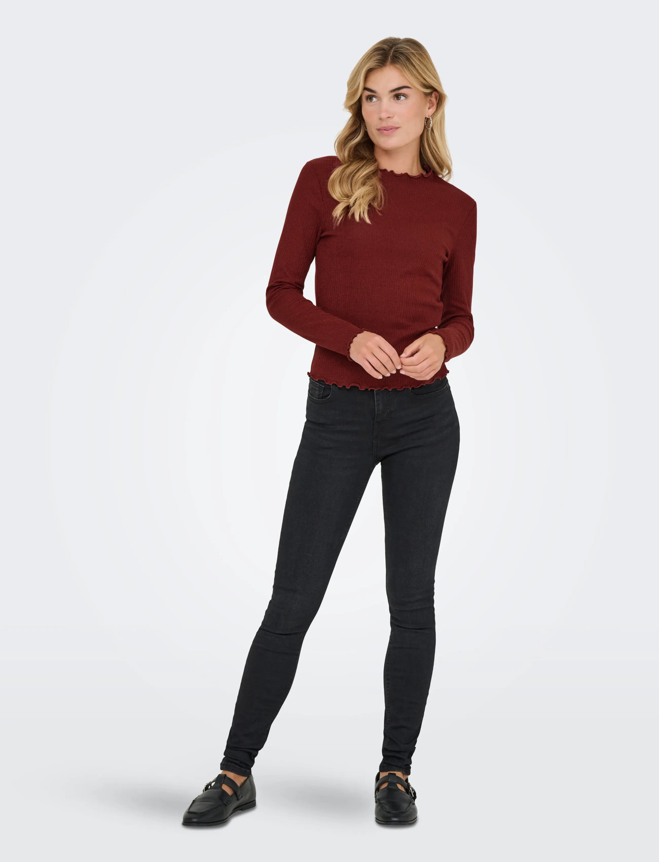 ONLY Onlemma Life Ls Glitter Top Jrs Noos - Burgundy - XS