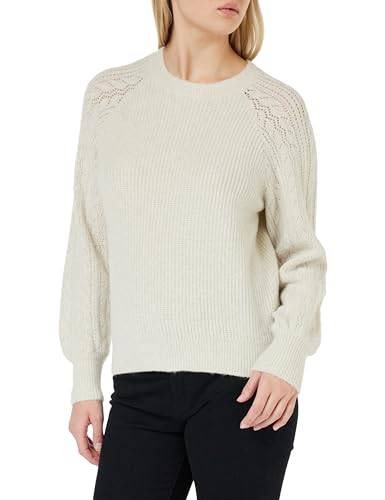 Vila dam Vipolani O-hals L/S glitter stickad topp/Su stickad tröja, Vit sand/detalj: ljusguldglitter, M