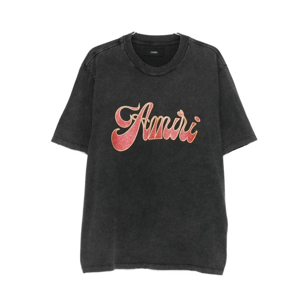 Amiri, Toppar , Herr, M, Läder, Svart Glitter Logo Print T-shirt