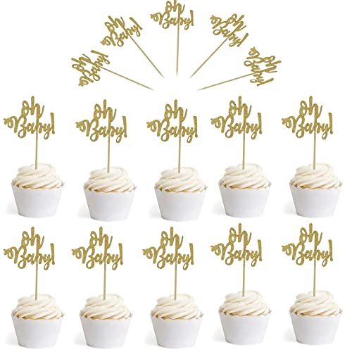 Hudiepan 20 stycken Åh babyshower-tårtdekorationer guld, OH baby, babyshower-tårtdekorationer, glitter Åh baby cupcake-toppar, pojke OH baby tårtdekoration för bröllop, födelsedag, babyshower
