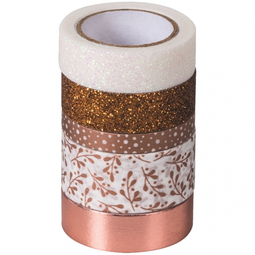 Heyda Dekorationstejp - Glittertejp 5-pack Rose Gold Glossy