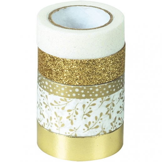 Heyda Dekorationstejp - Glittertejp 5-pack Gold Glossy