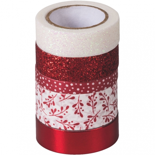 Heyda Dekorationstejp - Glittertejp 5-pack Red Glossy