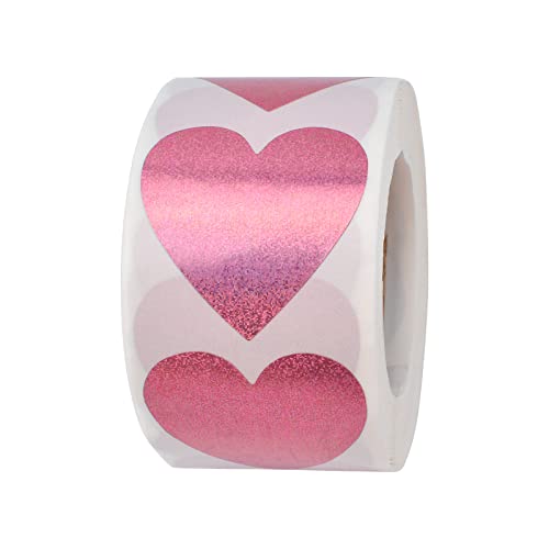 URROMA 500 st rosa hjärta glittrande klistermärken, glitter laser klistermärke för småföretag förpackning alla hjärtans dag jul bröllop kuvert tätning