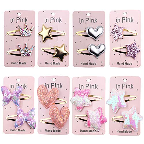 Etern 16 delar flickor barn stjärnformade hårklämmor, metallsnäpphårspännen, glittrande hjärta stjärnformade hårklämmor, för barn