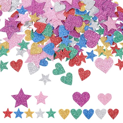 BIHUIZ 320 stycken glittrande skumklistermärken, stjärna och hjärta klistermärken, färgglada självhäftande glitter skumgummiklistermärken för barn, väggdekoration, hantverk