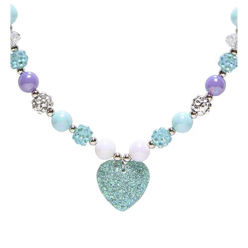 Widmann 46761 – pärlhalsband, med glittrande ljusblå hjärta, smycke, kostymaccessoar, marschprins, temafester, karneval
