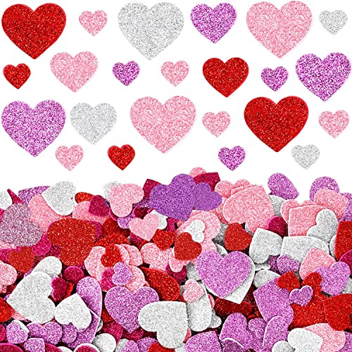 DONGDA 300 Stycken Skumklistermärken, Flerfärgad Glittrande Hjärta Set med Klistermärken för Pyssel för Barn Och Som Dekoration (Flera Storlekar)