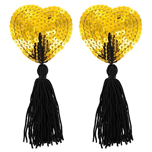 Paris Hollywood bröstvårta pasties hjärta glittrande paljetter guld/pompons självhäftande återanvändbar