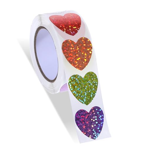 Glitter hjärta klistermärken, 500 st 2,5 cm hjärtklistermärken för barn 8 färger glitterklistermärken självhäftande hjärta klistermärke rulle glittrande klistermärken disko klistermärken skinande