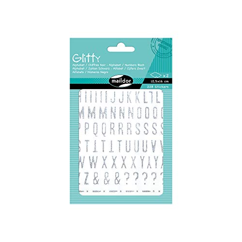 Maildor Glitty klistermärken, alfabet/nummer – silver, paket med 2 ark