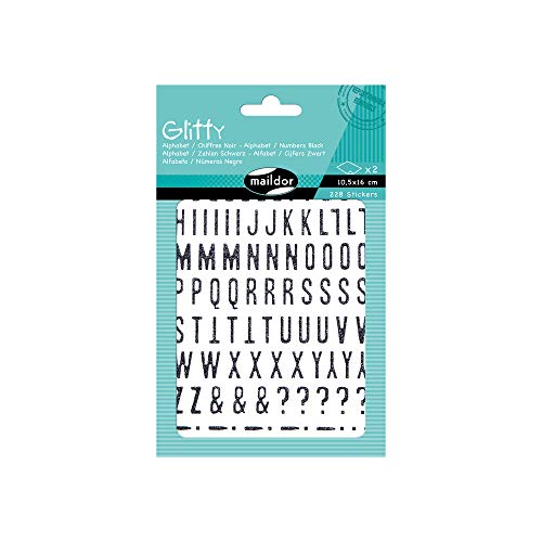 Maildor Glitty klistermärken, alfabet/nummer – svart, förpackning med 2 ark