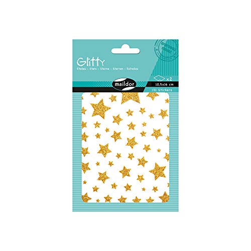 Maildor AE150C Glitty-pack klistermärken (med 151 klistermärken, 2 ark i format DIN A6, 10, 5 x 16 cm, perfekt för barn från 2 år, stjärnor) 1 pack guld/rosa