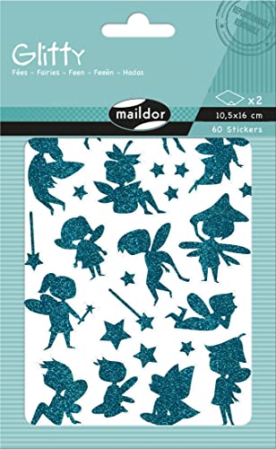 Maildor AE101O Glitty-pack klistermärken (med 122 klistermärken, 2 ark i format DIN A6, 10, 5 x 16 cm, perfekt för barn från 2 år, fjärilar och blommor) 1 pack lila