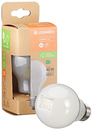 LEDVANCE Energisparlampa, frostat glödlampa, E27, varmvitt (3000K), 2,5 watt, ersätter 40W glödlampa, mycket effektiv och energisparande, förpackning med 6