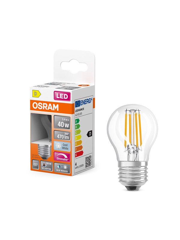 Osram LED-glödlampa LED Comfort mini-ball filament 470lm 3.4W/940 (40W) E27 dimmable E27