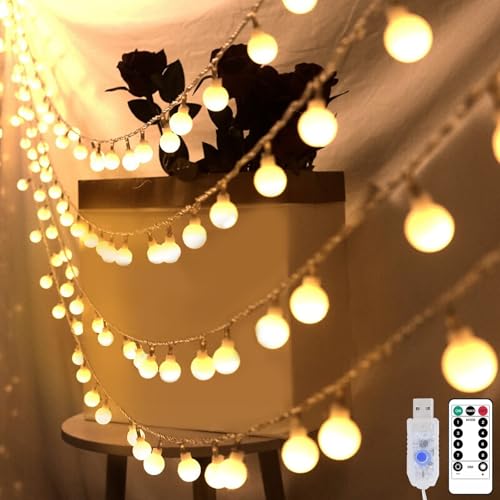Bigzom 100 lysdioder glob ljuskedja, inomhus dekoration glödlampa 11 meter, LED-ljuskedja varm vit, 8 lägen och timerfunktion, USB-strömförsörjning, ljusslinga utomhus för balkong, festtält