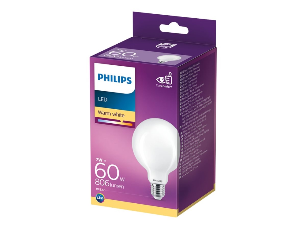 Philips - Led-Glödlampa - Form: G93 - Glaserad Finish - E27 - 7 W (Motsvarande 60 W) - Klass E - Varmt Vitt Ljus - 2700 K