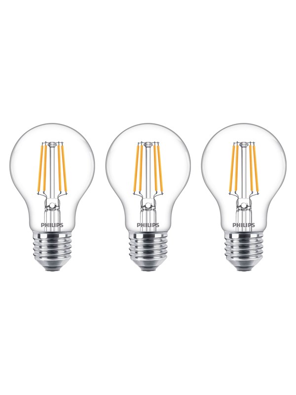 Philips LED-glödlampa Classic Standard 7W/827 (60W) Clear 3-pack E27