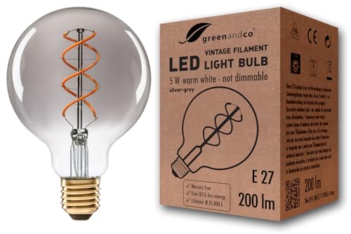 greenandco® LED vintage glödtråd glödlampa silvergrå ersätter 20W E27 G95 5W 200lm 1800K (extra varm vit) 360° 230V glaslampa, inte dimbar