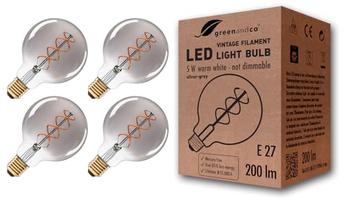 4x greenandco® LED vintage glödtråd glödlampa silvergrå ersätter 20W E27 G95 5W 200lm 1800K (extra varm vit) 360° 230V glaslampa, inte dimbar