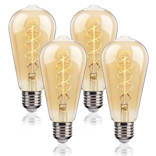 Edison Vintage Lampa E27, E27 LED Vintage Glödlampa Dimbar 4W ST64 Retro glödlampa Idealisk för Dekorativ Nostalgi och Retro Belysning, Bärnsten- 4 st(BT1)