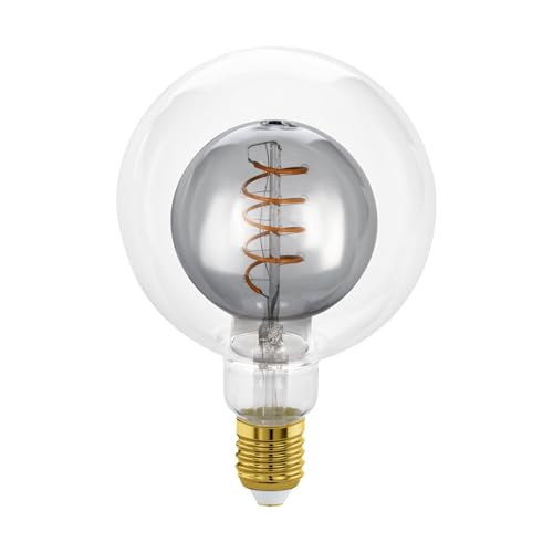 EGLO E27 Globe lampa dimbar, spiral LED retro glödlampa stor storlek, stor vintage dekoration lampor av rökglas och klart glas, 2 watt, 80 lumen, varm vit, 2000 K, Ø 12,5 cm